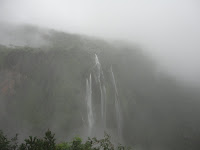 it never showed the signs of either flowing away or evaporating thru rains. But we hired a taxi there to see each of the falls from different points. At the first place where he stopped, we had to walk a few steps down and then we can see the 3 falls (I don’t exactly remember which ones they were). There is the famous Mungaru Male spot here where the shooting of the movie took place. The Spot is indeed very nice where you can see water of the falls flowing down vertically from its origin point. Unfortuanately here again, we couldn’t see the depth properly due to the clouds. But however, as and when the clouds where clearing for a few mins, the sight of the falls appearing at the back was so spectacular. The wait for this breath taking scenery was worth all the strain taken to reach there.